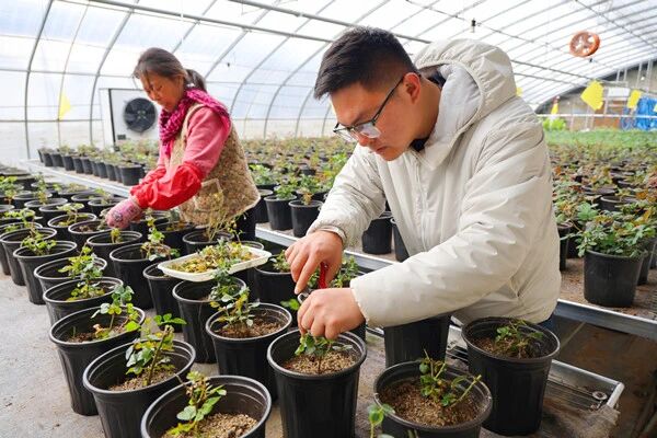 換盆工作完成后,園區(qū)將立即啟動修枝定型工作。技術(shù)人員將根據(jù)不同品種的生長習(xí)性和觀賞需求,對每株花苗進(jìn)行個性化修剪,優(yōu)化植株形態(tài),使其更加符合市場審美標(biāo)準(zhǔn)。這一舉措不僅能提升盆栽花的觀賞性,也顯著增強(qiáng)了其商品價(jià)值,為銷售贏得了更多優(yōu)勢?!邦A(yù)計(jì)到五月中旬左右,這批精心培育的盆栽花苗就可以成品上市銷售了。”園區(qū)技術(shù)員王斯達(dá)滿懷信心地表示,在智能溫控系統(tǒng)和水肥一體化系統(tǒng)的保障下,花苗將順利上市銷售。