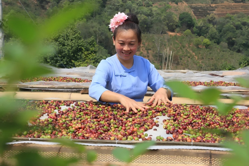 孟連咖農(nóng)晾曬咖啡豆。沈浩 攝