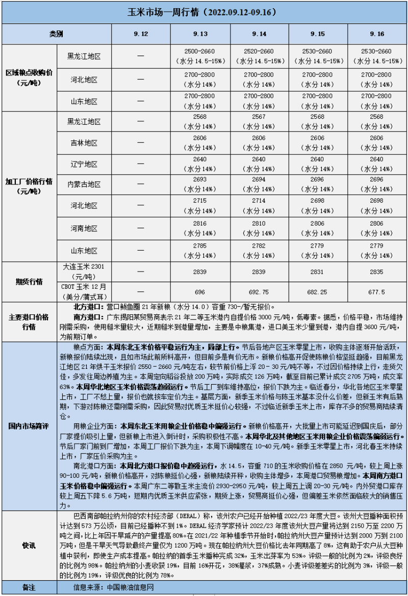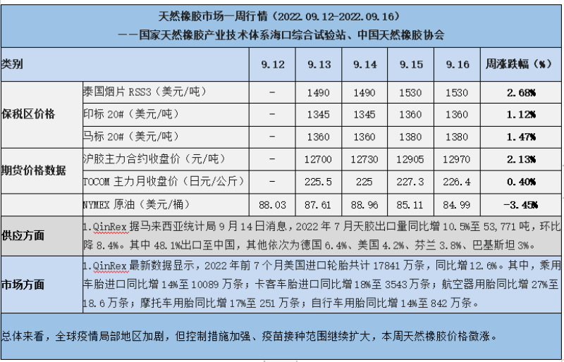天然橡膠、大豆、玉米市場(chǎng)一周行情(2022.09.12-09.16)