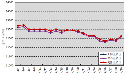 圖3 2022年4月國內(nèi)主銷區(qū)天然橡膠價格走勢