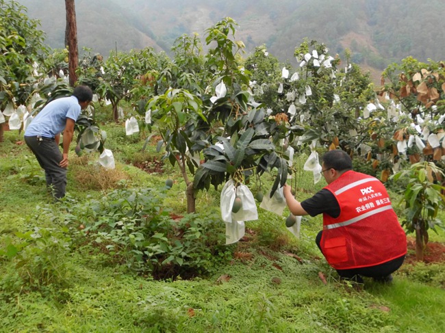 理賠人員查勘芒果病蟲(chóng)害情況。人保財(cái)險(xiǎn)攀枝花市分公司供圖