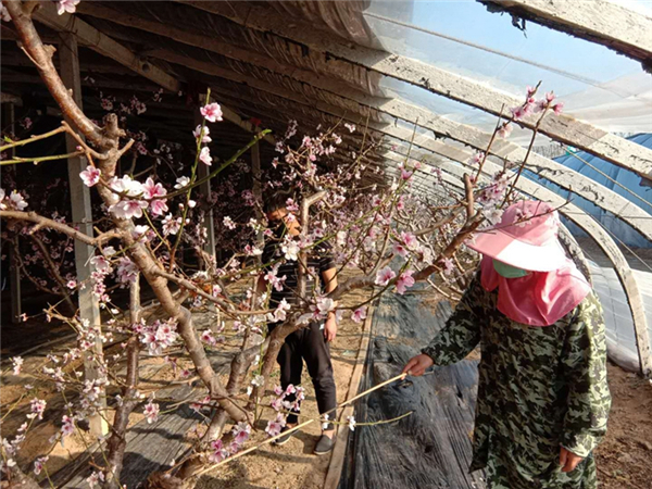 與此同時(shí),在位于江南茶區(qū)郎溪縣的農(nóng)墾十字鋪茶場3萬畝茶園里,茶農(nóng)們正在對茶樹進(jìn)行修邊、打頭、施肥,著手做好采茶準(zhǔn)備。而在黃河故道旁邊的碭山果園場果樹大棚里,桃花、杏花競相開放,職工正抓緊授粉。種植戶周華萍說,“往年授粉都要雇不少人,今年由于疫情,防止扎堆,沒有雇人,搶抓時(shí)間,爭取授上粉,座上果,不減收?!蹦壳肮麍@場800畝大棚果樹大部分已經(jīng)完成授粉工作。