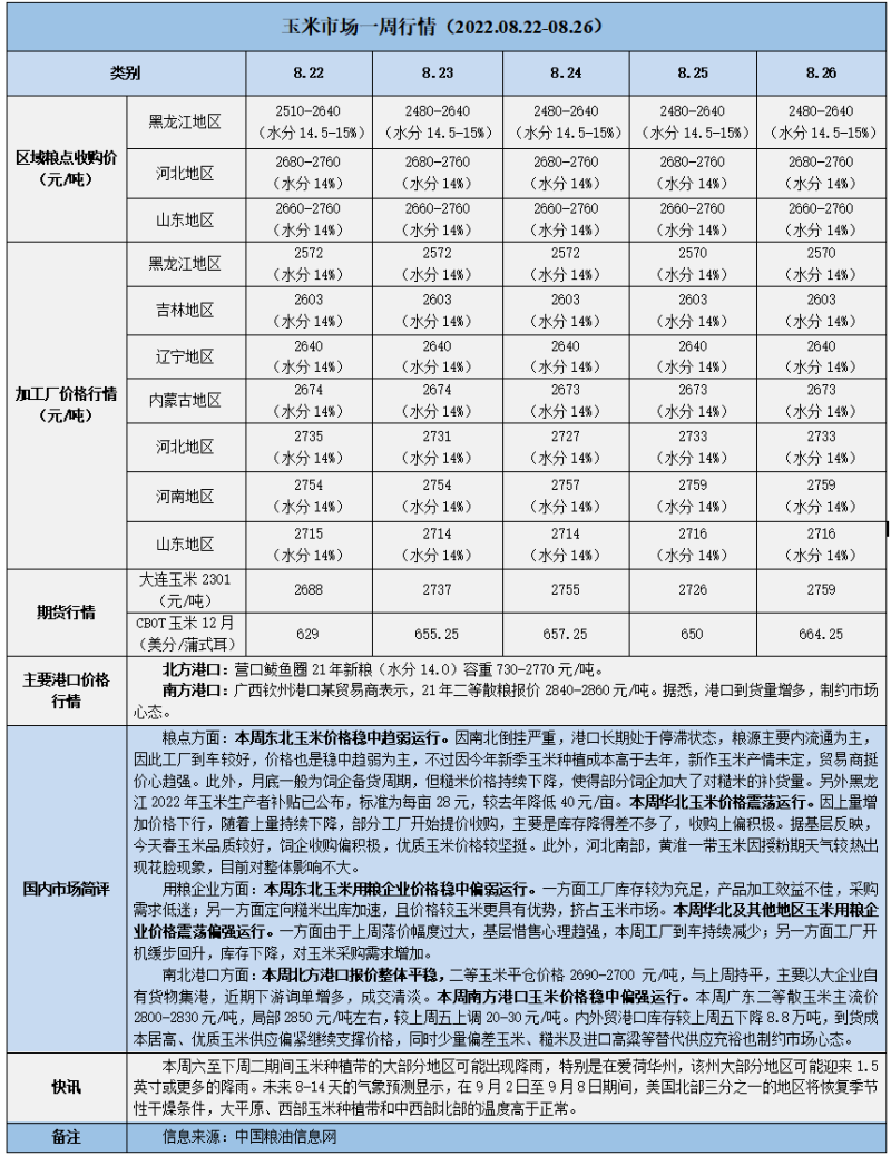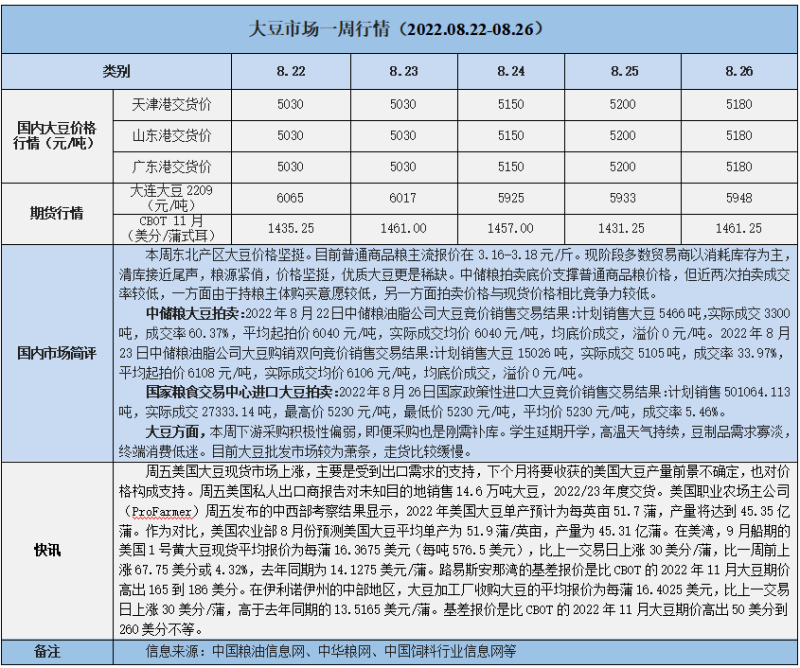 天然橡膠、大豆、玉米市場(chǎng)一周行情(2022.08.22-08.26)