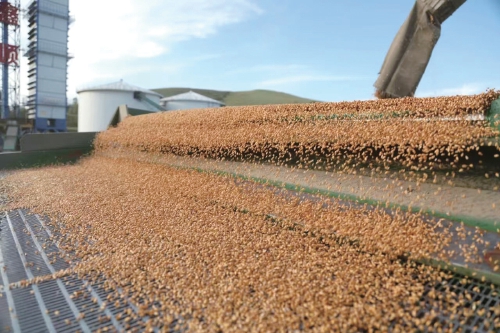 免渡河農(nóng)牧場(chǎng)收獲的小麥正在進(jìn)行篩選,等待烘干后入倉。 王軒 攝