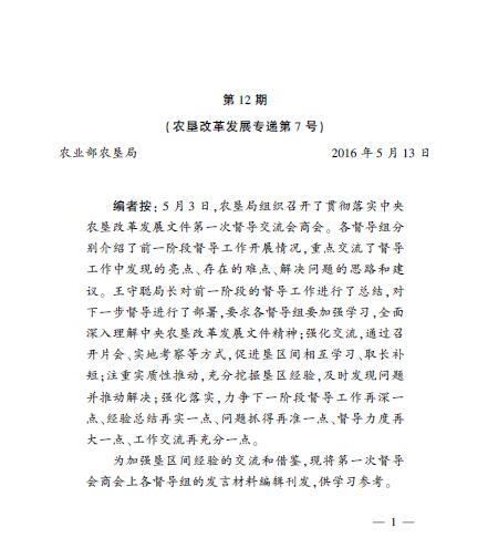 農(nóng)墾情況第12期(農(nóng)墾改革發(fā)展專遞第7號)