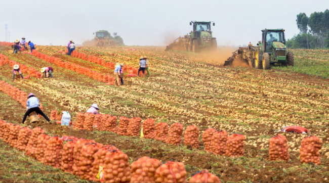 湛江農墾集團立足雷州半島冬季光熱優(yōu)勢,深耕“北薯南種”產業(yè),以高標準示范基地為抓手,推動馬鈴薯產業(yè)規(guī)?;?、標準化發(fā)展。2025年建成1萬畝冬種馬鈴薯示范基地,平均畝產突破6000斤,其中幸福農場基地畝產達7000斤,產量與優(yōu)質商品率創(chuàng)新高,以實干彰顯國企擔當。