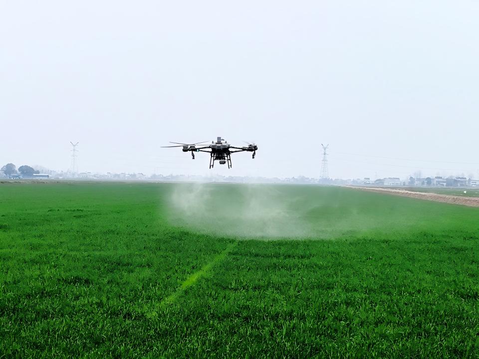 4月1日,華陽(yáng)河農(nóng)場(chǎng)第六農(nóng)業(yè)分場(chǎng)麥田上空8臺(tái)植保無(wú)人機(jī)來(lái)回穿梭,正在開(kāi)展小麥“一噴三防”作業(yè)?!把巯抡浅嗝共 ⒀料x(chóng)等病蟲(chóng)害易發(fā)期,一次噴施藥劑,就可以實(shí)現(xiàn)防治病蟲(chóng)害、防倒伏、防早衰、促增產(chǎn)的多重目標(biāo)?!鞭r(nóng)場(chǎng)農(nóng)業(yè)技術(shù)人員龍波介紹。